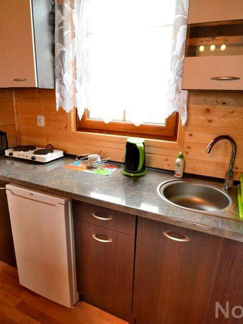 W większości nasz ośrodek stworzony jest z domków wolnostojących. Każdy domek jest 1 piętrowy, na dole znajduje się salon z sofą, kuchnią i łazienką oraz wyjście na taras. Do góry wchodzimy stromymi schodami, gdzie znajdziecie 2 pokoje z 2 łóżkami w każdym.